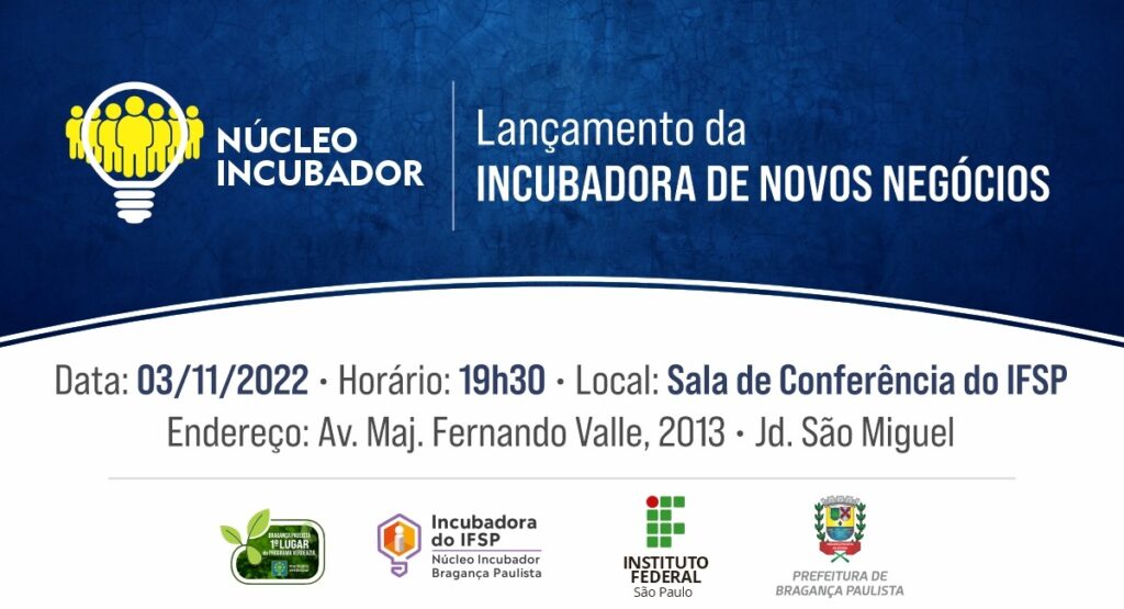 A Prefeitura de Bragança Paulista, por meio da Secretaria Municipal de Governo, Desenvolvimento Econômico e Inovação, lança na próxima quinta-feira (03/11), às 19h30, a Incubadora de Novos Negócios. Na sequência, ocorrerá a palestra “Criando negócios de Impacto”, com o Prof. Dr. Breno Teixeira Santos.