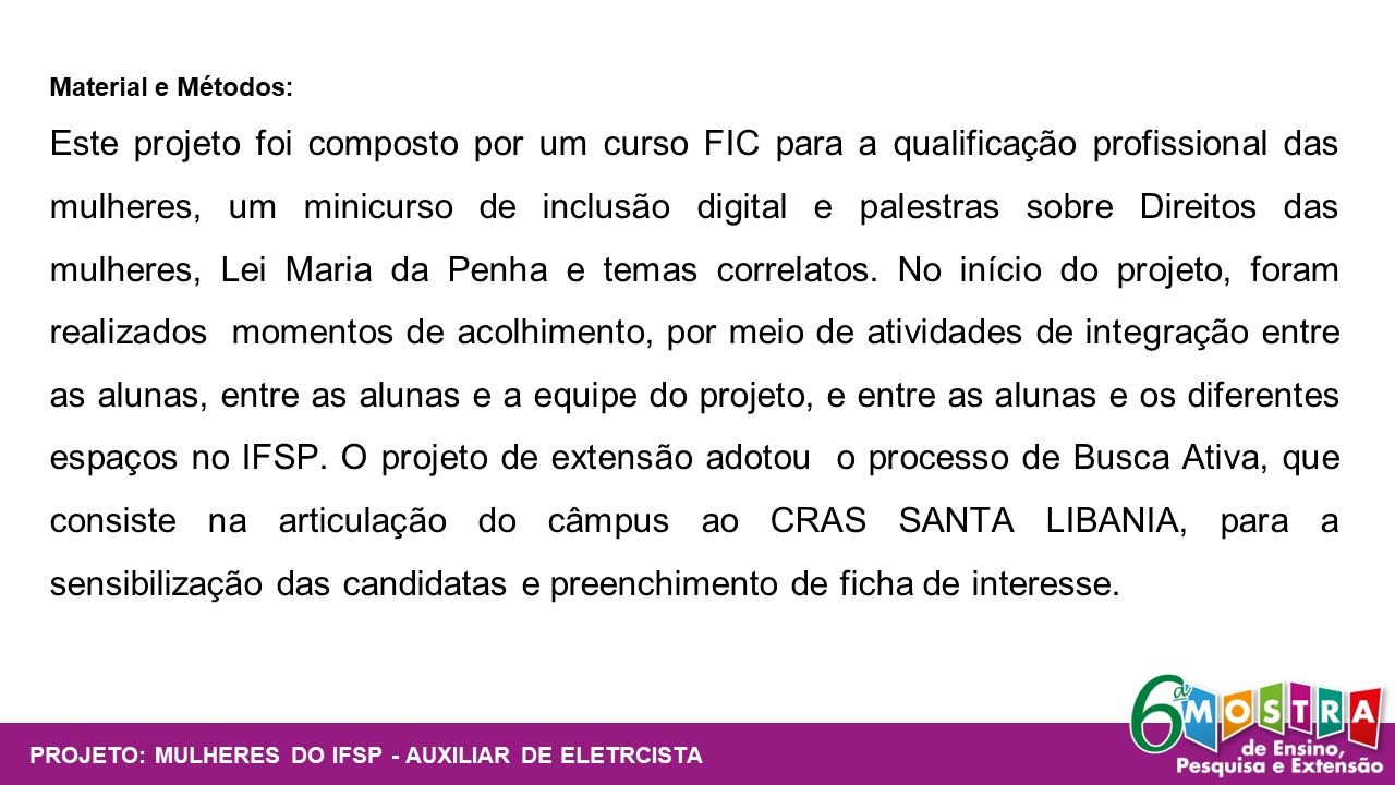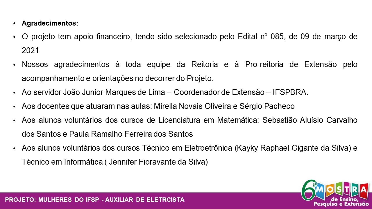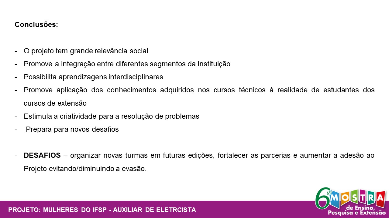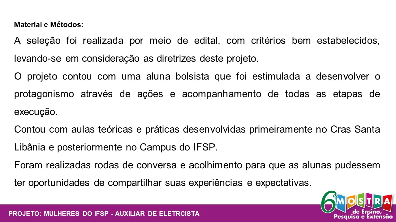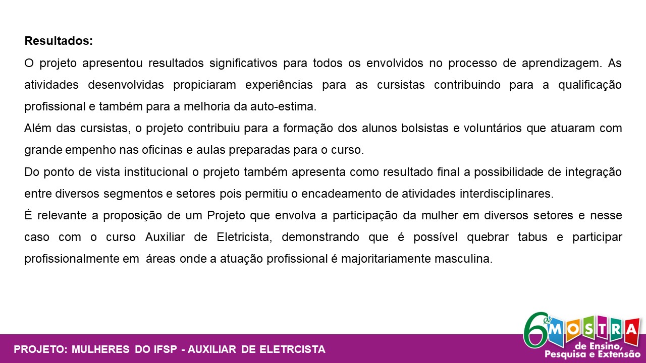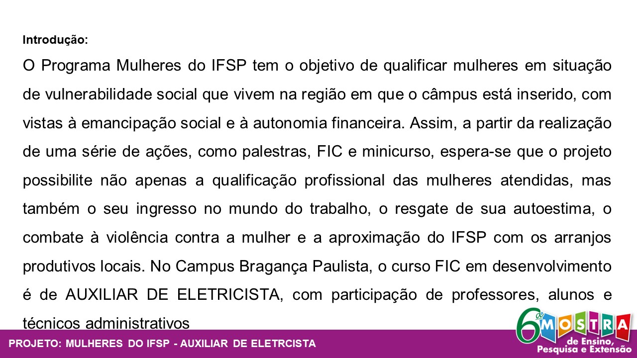 Mulheres do IFSP - Curso de Extensão "Auxiliar de Eletricista"