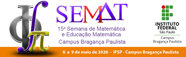 A Comissão Organizadora da SEMAT convida todos (as) a participarem da submissão de trabalhos para a 15ª Semana da Matemática e Educação Matemática, promovida pelo curso de Licenciatura em Matemática do IFSP – Campus Bragança Paulista.